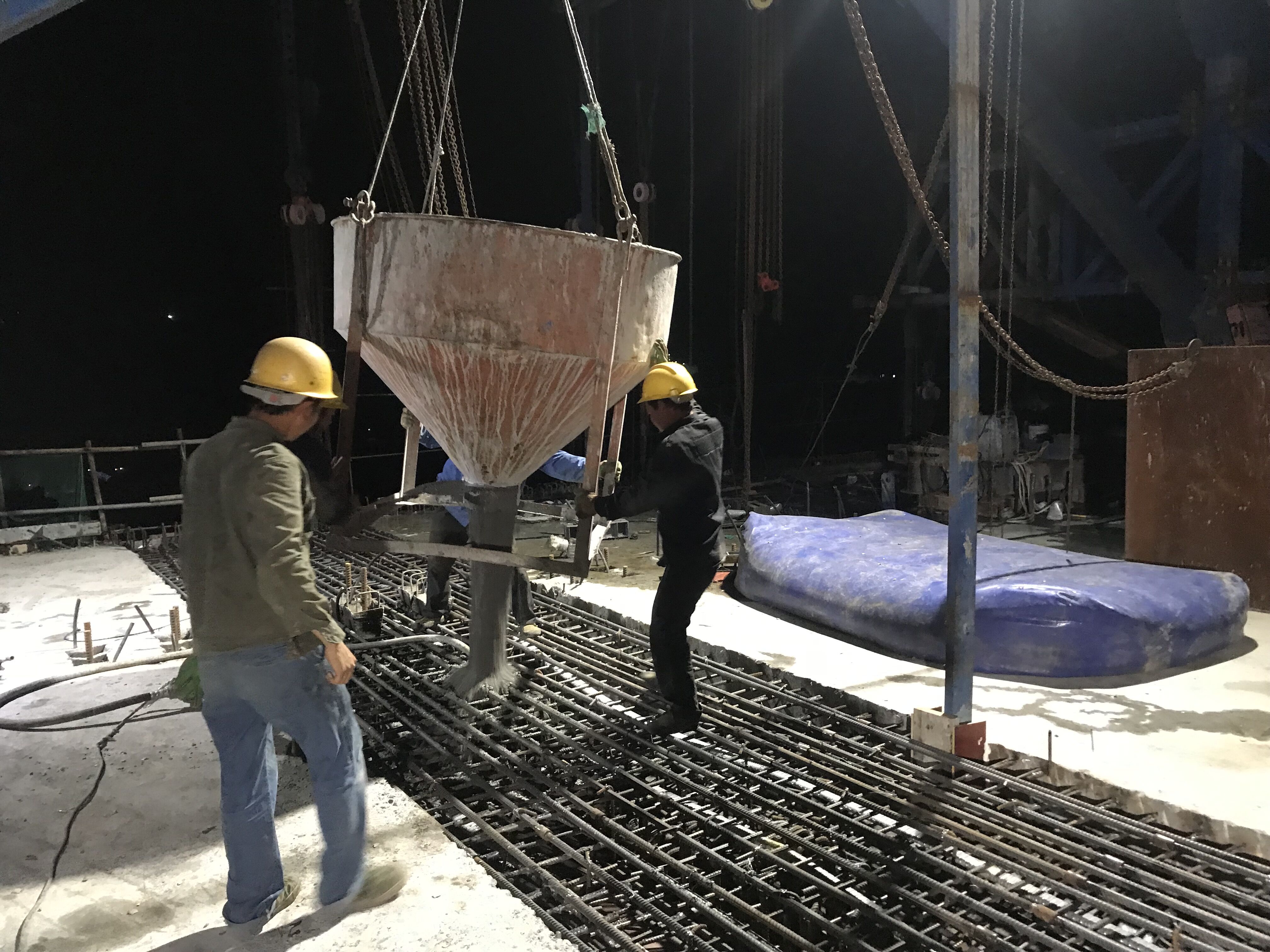 9月16日零时,渝黔高速公路扩能项目两合江特大桥右幅连续刚构18号墩中跨合龙前混凝土浇筑场景。鲁文涛 摄
