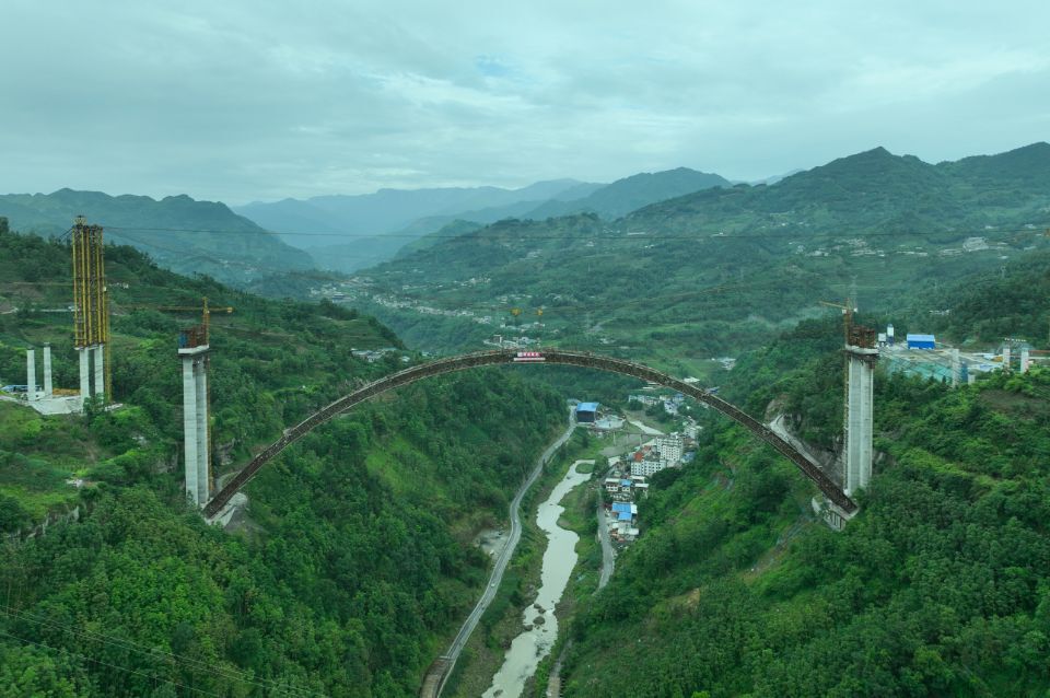 乐西高速苏坝特大桥钢管拱劲性骨架顺利合龙