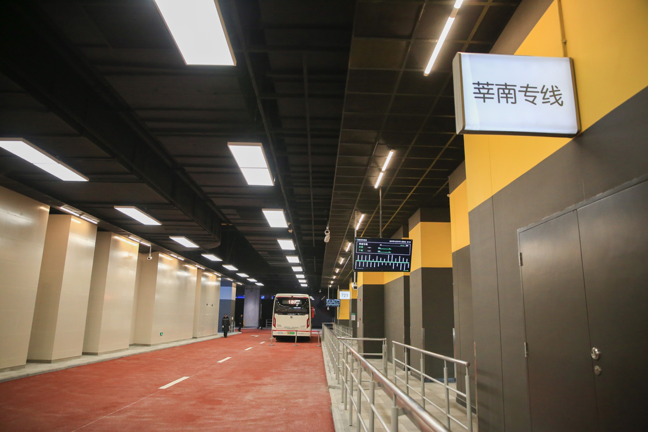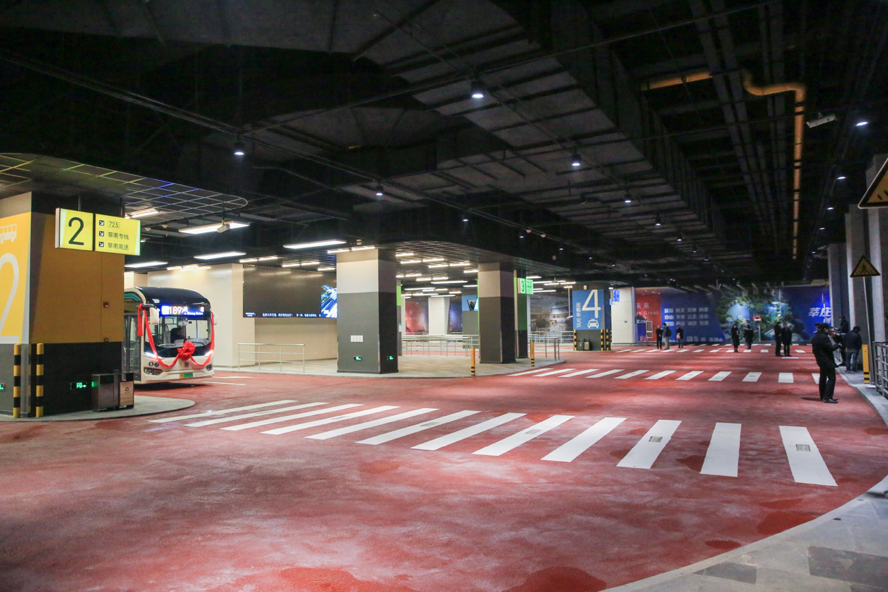 在上海的公交枢纽站中第一次建造有新风系统,当枢纽站内CO达到一定浓度时,新风系统会自动控制新风和排风的开启,保证良好的空气环境。这也是首次建造有醒目的彩色陶瓷树脂路面的车道以及斑马线警示灯设施,及时提醒行人注意安全。