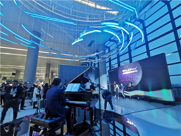 12月20日傍晚,在虹桥机场2号航站楼出发候机大厅中央“银河畅想曲”空间艺术景观下,“钢琴和芭蕾的艺术对话”专场演出活动拉开了虹桥机场“元旦迎新”系列主题活动的帷幕。