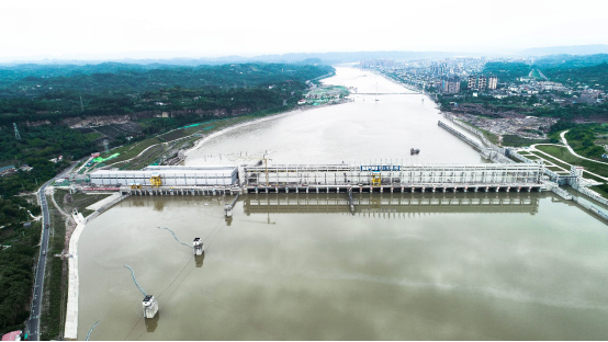 站在犍为枢纽坝体上向上游望去,岷江碧水无澜。目前犍为枢纽航道渠化20.2公里,“华龙1号”关键组件、东电水能发电机组等大件设备都是在乐山大件码头下水,经犍为枢纽抵达长江再出海。预计到“十四五”末,岷江下游四级航电枢纽基本建成,岷江下游高等级航道全线贯通。