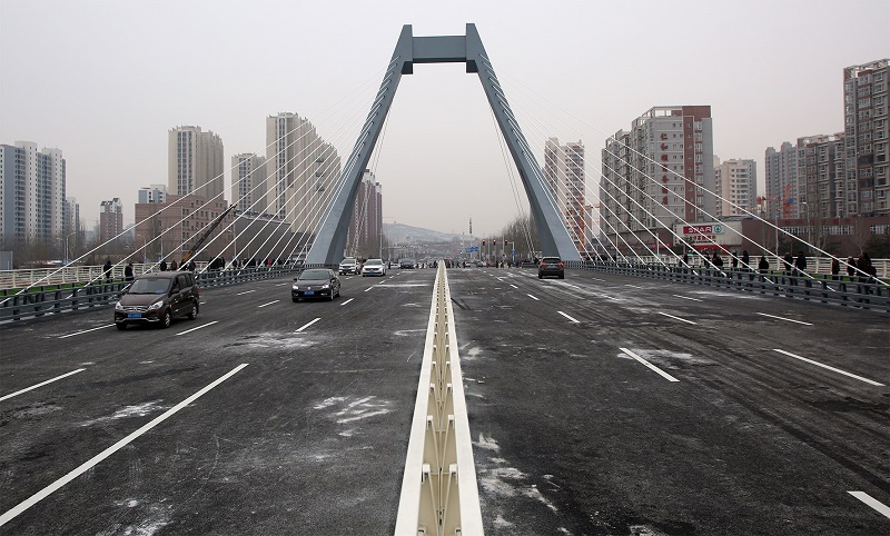 12月21日下午,由中铁十局八公司承建的张家口市重点民生工程——纬二桥试通车。