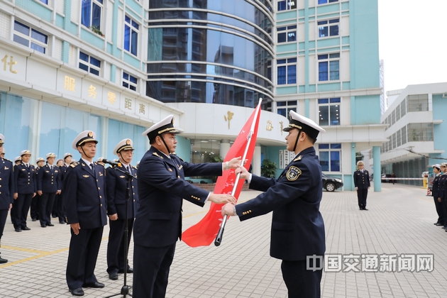 8时38分,局领导带领机关全体人员和基层代表在办公楼前集合,队伍整齐,精神擞抖。3名护旗手迈着铿锵有力的步伐,走向升旗台。当嘹亮的国歌声响起,鲜艳的五星红旗和海事旗迎着朝阳冉冉升起,迎风飘扬,全体人员立正、敬礼,表达对党和祖国的无限忠诚和诚挚祝福。升旗完毕后,面对神圣的国旗和海事旗,全体人员高举右拳庄严宣誓,重温国家公务员入职时的誓词;党员和青年代表先后宣读新年承诺;授予党员小分队、青年小分队“勇当海事执法铁军先锋”和“勇当海事执法铁军排头兵“队旗。 珠海海事局局长程锦潮表示,通过新年升旗、庄严宣誓、郑重承诺,激发海事人不忘公务员的初心,全面履行职责使命,全心全意为人民服务。