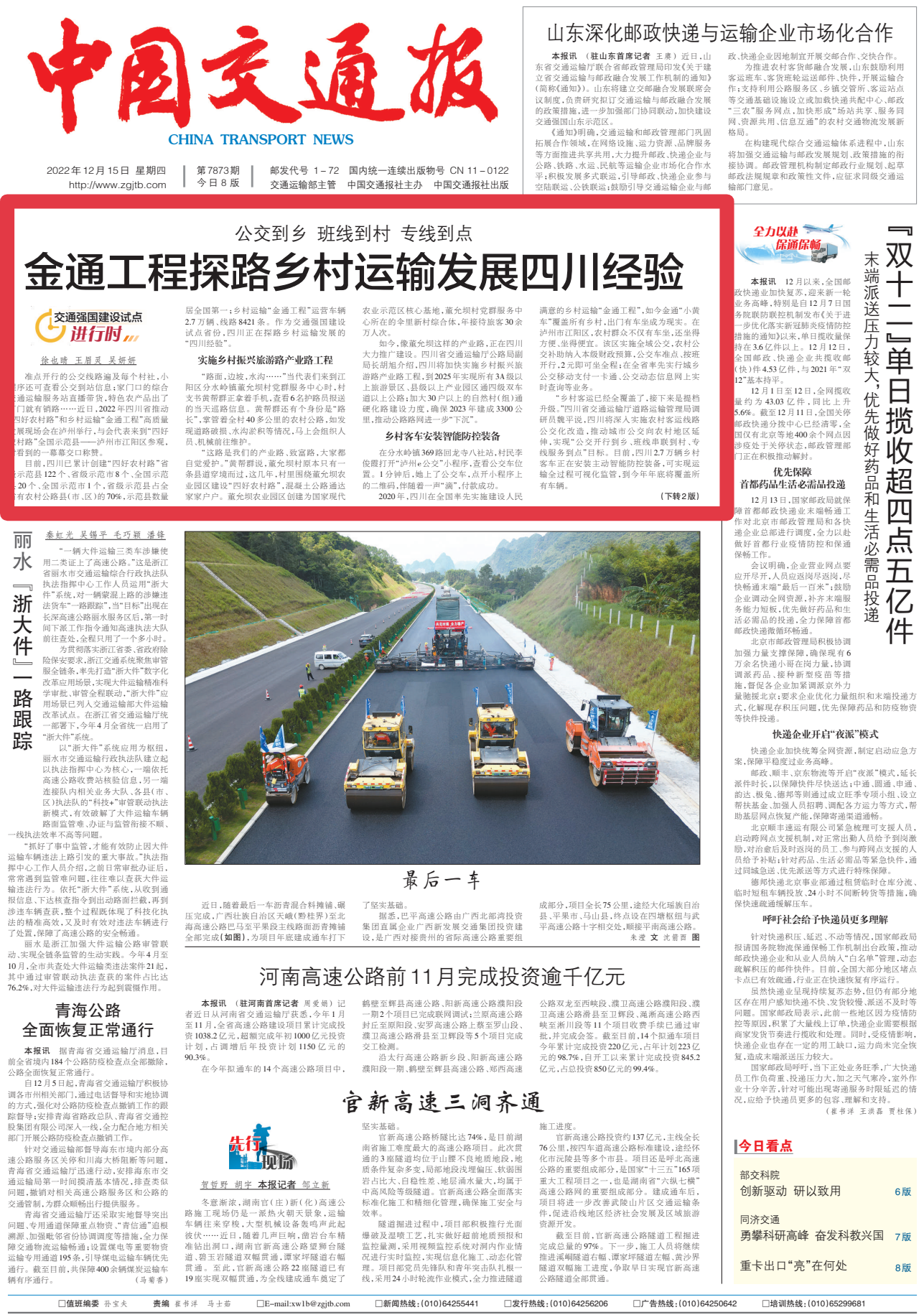 中国交通报头版头条报道四川金通工程探路乡村运输发展经验