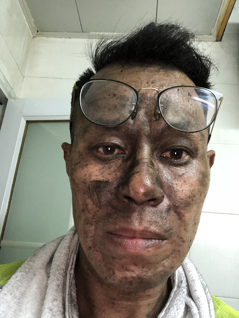 雪峰山隧道“7.2”火灾时,共产党员李东胜冒死在洞中连续奋战23个小时。这是出洞时的样子。 罗文明供图