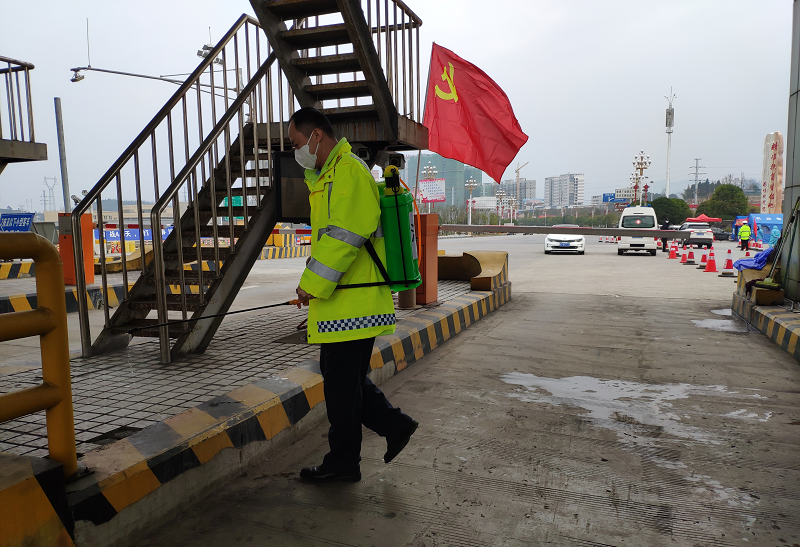 娄底高速副站长陈恒,既是指挥员,又是“一等劳动力”,将最费体力耐力的消毒工作“揽”在身上。每天背着几十斤的喷雾器,在办公区、公共区喷来喷去,洒来洒去,从早到晚、汗流浃背地消毒几次,腰酸背痛、声音嘶哑了,他都全然不顾。