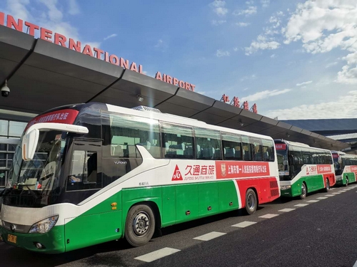 2月19日8:48分,强生控股麾下久通商旅公司的8辆载着上海市第一人民医院第三批156名医护人员紧急驰援武汉的援鄂医疗队大巴,顺利抵达上海虹桥机场T2航站楼。