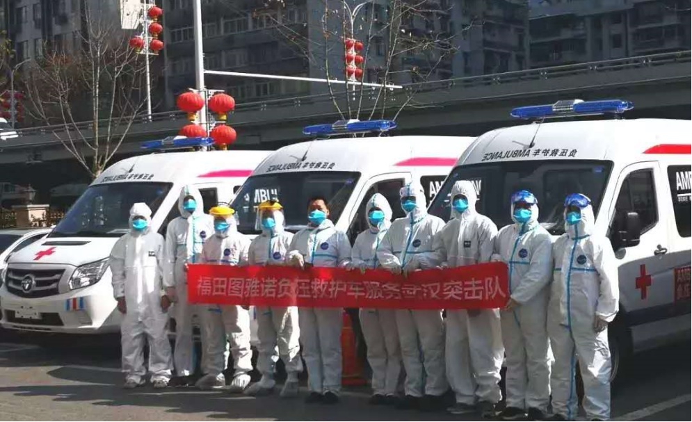 肩负社会责任,福田图雅诺加班加点生产的负压救护车陆续交付武汉一线保障疫区病患转运,与此同时,服务人员作为志愿者突击进驻疫区,为前线负压救护车高效运转保驾护航。