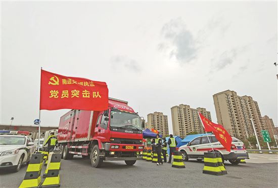 立战书,许誓言!“疫情不除,我们不退!”南通市交通运输综合行政执法支队一大队大队长薛毅说。沈海高速公路小海收费站是进入南通市区交通流量最大的一个管控点,日均进城车流量4000余辆。疫情防控阻击战打响前,相关党员主动请缨,24小时轮流值守。