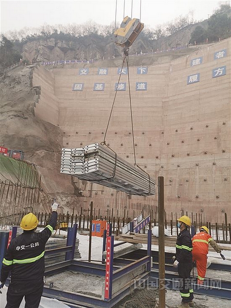 重庆新田大桥施工人员起吊物资。 特约记者 陈洪胜 摄