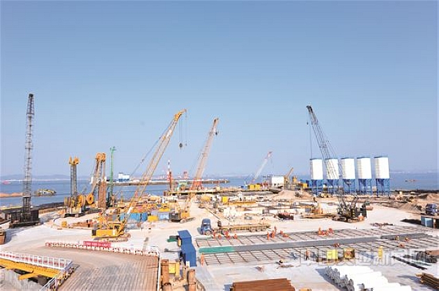 深中通道西锚碇施工现场,工人们正在紧张有序开展工作。沈卫东 摄