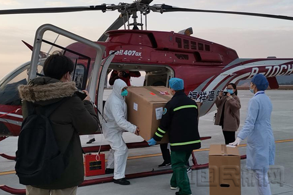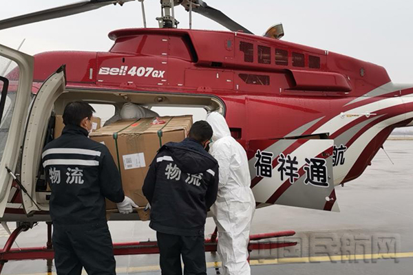 《中国民航报》、中国民航网 记者冯智君 通讯员黄早杰、周俊杰、朱敏报道:2月10日17时50分,湖北福祥通航公司直升机平稳降落在十堰机场,一批医疗防疫物资及一台用于新冠肺炎病人治疗使用的移动心肺仪顺利送达十堰。