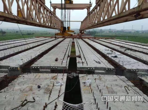 7月20日,新余环城路项目花田袁河大桥右幅第三联桥面铺装完成120米。花田袁河大桥是新余环城路主线为跨越袁河而设置的桥梁,全长409米,桥梁上构左右幅均采用10*40米正交的先简后支连续的预应力砼T梁,下构为双柱式桥墩。