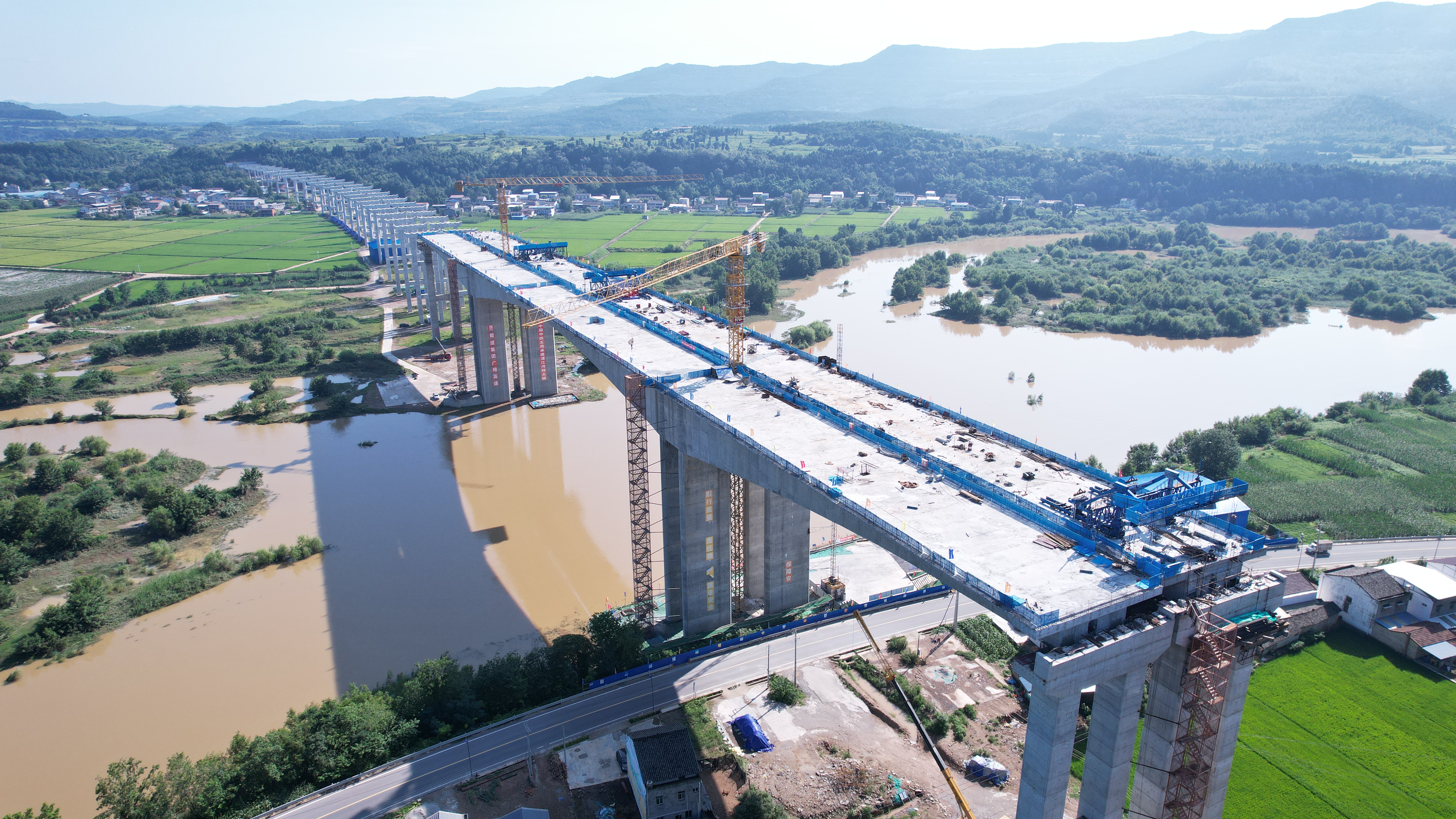 广绵高速扩容项目潼江河特大桥连续梁双幅合龙