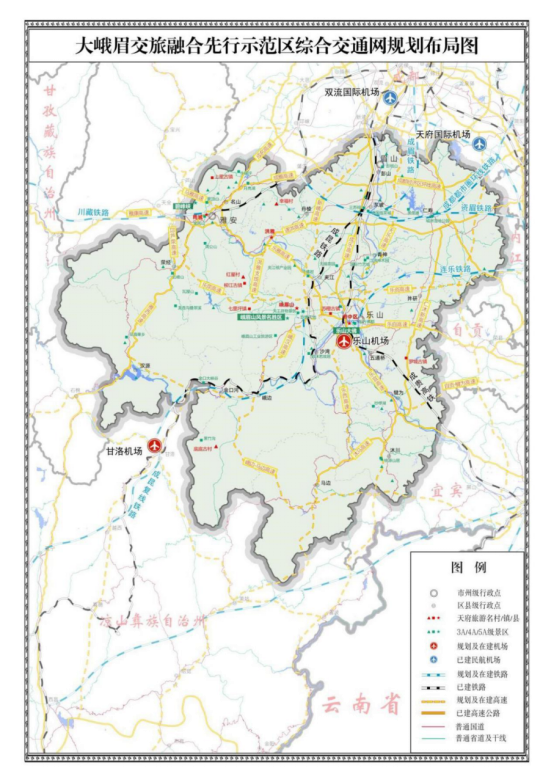 2023年1月,省政府办公厅印发《大峨眉交旅融合先行示范区建设方案》(以下简称《方案》),包括乐山全域在内的21个县(市、区)作为建设交旅融合先行示范区,提出“两网”“两体系”建设任务,助力“大峨眉”建设世界重要旅游目的地,为四川现代化建设提供交通强省、文化强省、旅游强省跨界融合的先行示范。