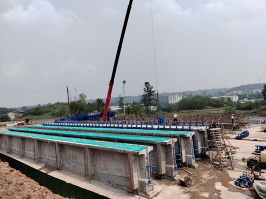 目前该桥已完成梁板钢筋绑扎8片、梁板浇筑4片、3号桥台桩基旋挖浇筑施工4根。同时积极协助业主单位协调施工用地手续,主动协调电力、国防光缆、弱电等杆管线单位完成迁改,力争在今年8月成自宜高铁联调联试前完成该桥主体结构工程。