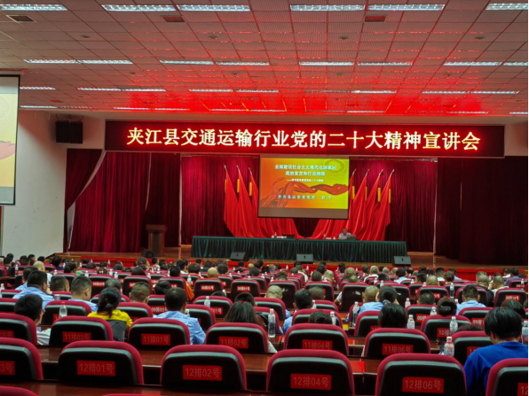 为深入学习贯彻习近平新时代中国特色社会主义思想和习近平总书记对四川工作系列重要指示精神,自觉地用党的二十大精神武装头脑、指导实践。近日,乐山市夹江县交通运输行业开展党的二十大精神宣讲会和党组织书记讲党课活动,全县交通系统干部职工和交通客运、公交、出租、网约车、货运、维修、驾培、寄递物流、公路养护等行业从业人员共230余人参加。