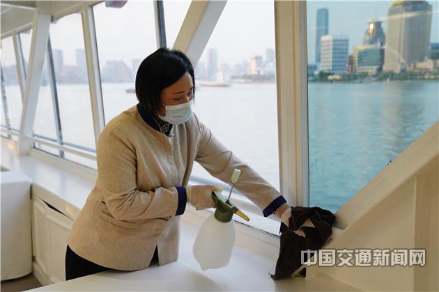 疫情防控期间,所有浦江游览码头、船舶每日加强卫生消毒,安检口、候船厅、检票口、卫生间、售票区域、船舶客舱、座椅、栏杆、扶手等人员可直接接触部位都增加了消毒频次。