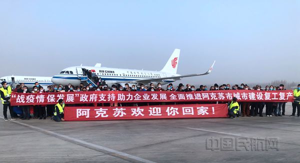 当日复工包机由新疆阿克苏地区行政公署牵头组织。首架国航包机由空客A319飞机执行,搭载116人于上午06时53分起飞;第二架包机由空客A320飞机执行,搭载144人于下午15时37分起飞。