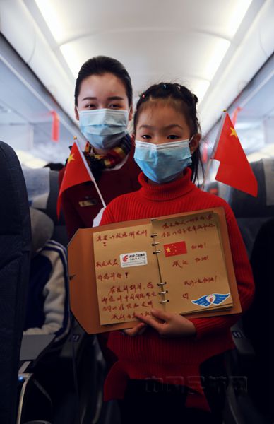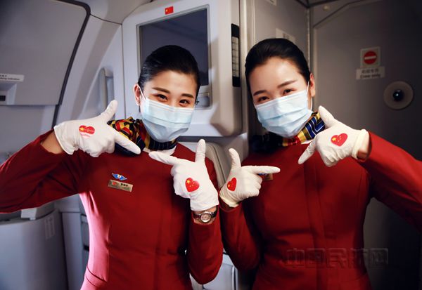 国航西南分公司为复工团队提前打印登机牌,设置行李托运专属柜台并协调机场开设安检"绿色通道"。执飞包机航班的客舱服务部"凤翮"乘务组开展专属广播词服务,邀请复工团队一起唱响"我和我的祖国"。歌声结束,大家在乘务员的带领下齐声高喊"武汉加油!中国加油!"将客舱气氛推向高潮。