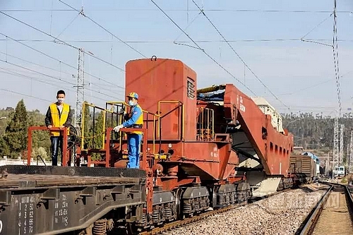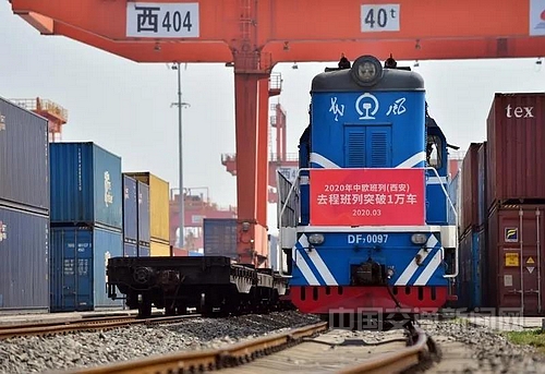 3月11日,伴随着清脆的汽笛,X8025次列车从新筑车站开出,满载服装、电子配件、电器等50车各类货品,一路向西,奔向德国曼海姆。(李博 齐超 供图)