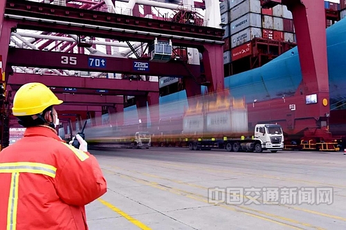 山东港口青岛港职工一边抗击疫情,一边有序开展装卸生产。(李强 供图)
