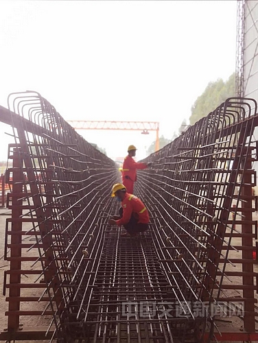 和煦春日下,广西融河高速二分部钢筋加工场工人正在作业。(黄婷婷 供图)