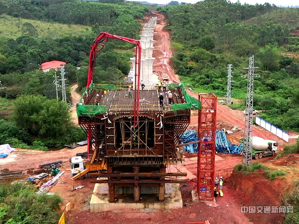 3月19日,中国铁建十六局集团承建的广西新建防(城港)东(兴)铁路全线首个连续梁开始浇筑施工。