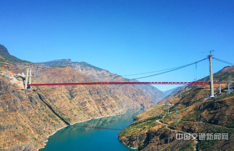 金安金沙江大桥为主跨1386米的单跨双铰板桁结合式悬索桥,创下多项世界之最:是世界范围内在“三高地区”(高海拔、高差大、高地震烈度)建设的结构复杂、技术难度高、最大跨径的山区悬索桥;钢桁梁吊装设备跨径1386米,是世界桥梁领域最大跨径缆索吊;大桥宽27米,跨径1386米,宽度与跨径比达1/51,居世界第一;是世界首座全桥采用U肋全熔透焊接工艺的桥梁。