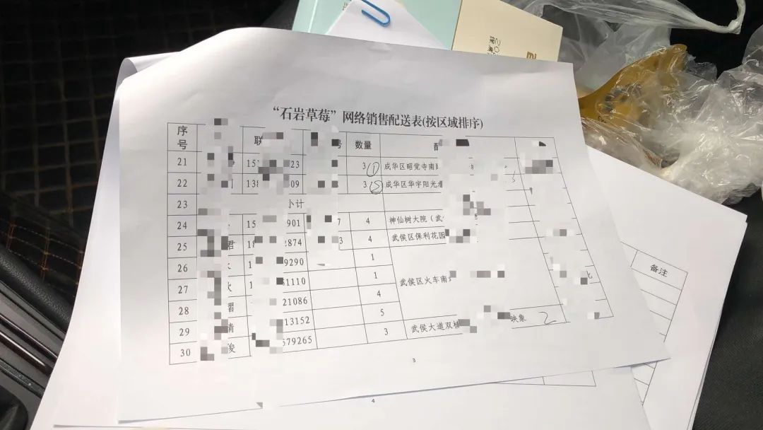 那段时间,他白天收单,晚上整理订单,第二天凌晨摘草莓装箱,上午从石岩寺村开车到成都送货,晚上再整理订单、处理售后,这样下来,每天只能睡上四五个小时。在送货中,他全程不与顾客直接接触,草莓也只是放在小区门口,一日三餐全部在车上吃面包和饼干,最多的一天送了67个小区,最远的一单跑到了青白江。