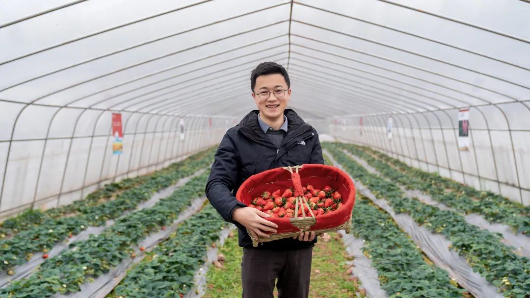 刘海川今年25岁,今年已是被成都轨道集团派驻到简阳市雷家镇石岩寺村开展驻村帮扶工作的第二个年头。2019年,他牵头建成了村级农业产业园,带领贫困户种上了高品质大棚草莓,可新冠肺炎疫情来袭,村民出不去,经销商进不来,眼看着上千斤草莓就要烂在棚里,“致富果”要变成“赔钱果”,刘海川于是迎难而上,充当起了草莓的“销售员”、“快递员”和“售后员”。