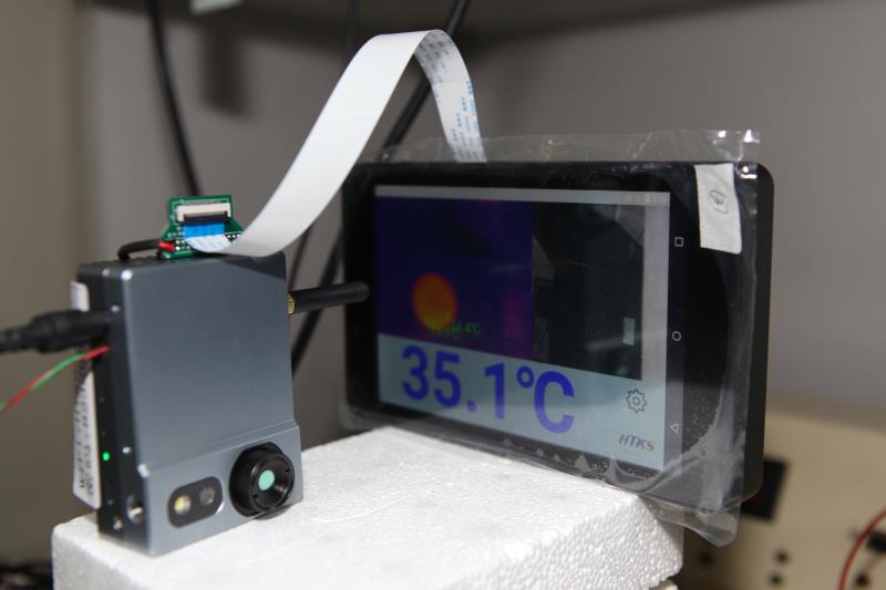 部分通过试验的门式测温仪,投放在车站、学校、商场、企事业单位等客流较多的地点,疫情期间,红外事业部副经理唐成军就带人在现场安装调试设备。