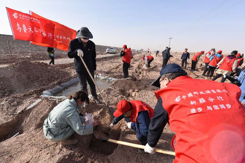 “开展绿色长廊建设,是落实党中央部署要求,践行绿色发展理念,传承乌铁人艰苦创业‘五种精神’,保证铁路运输安全的重要举措。”中国铁路乌鲁木齐局集团有限公司绿化委员会办公室副主任马玉龙表示。此次义务植树活动由中国铁路乌鲁木齐局集团有限公司和中国邮政储蓄银行新疆分行共同组织,其中有铁路员工791名、邮储员工130名,在铁路两侧植树约3.5公里。