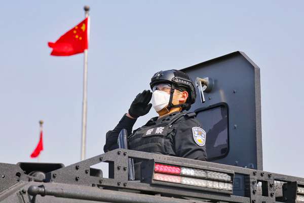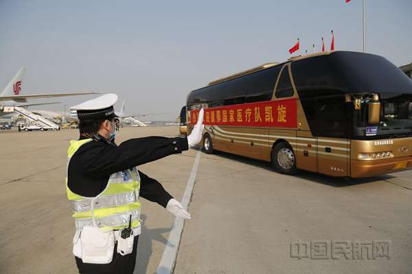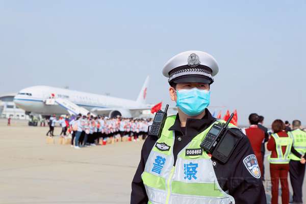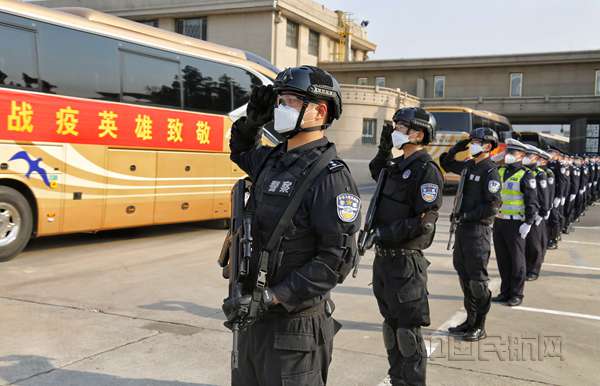 列队致敬 首都机场公安局欢迎国家援鄂医疗队包机抵京