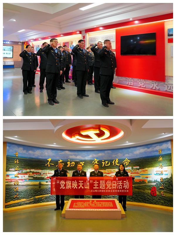 红山嘴口岸国际道路运输管理局党支部开展“党旗映天山”主题党日活动