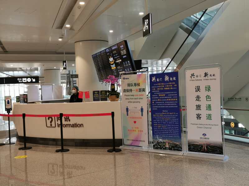 在疫情防控方面,大兴机场成立疫情防控工作领导小组及专项工作组,分别从旅客防控、员工防控、物资运输、综合物资、宣传督导、安全运行等方面,全面做好疫情防控工作。目前,大兴机场航站楼完成22台新型测温设备加装,该设备集非接触式体温检测、智能人脸识别、自动校正功能为一体,可以便捷、安全的快速进行体温筛查。此外,大兴机场还会根据不同旅客流量灵活调整出入口及进港测温通道数量,为旅客提供安全、快捷的服务保障。