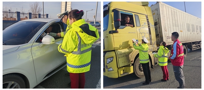 铁厂沟收费站、团结农场收费站通过发放海报形式,向过往司乘人员讲解交通安全知识,教育引导司乘远离超员、超速、疲劳驾驶、酒后驾驶等交通违法行为。同时结合辖区冬季道路交通情况,向过往司乘讲解玛依塔斯风区路段行车注意事项、大货车严禁水浇刹车等安全知识,让过往司乘对交通安全有了深入理解和警惕。