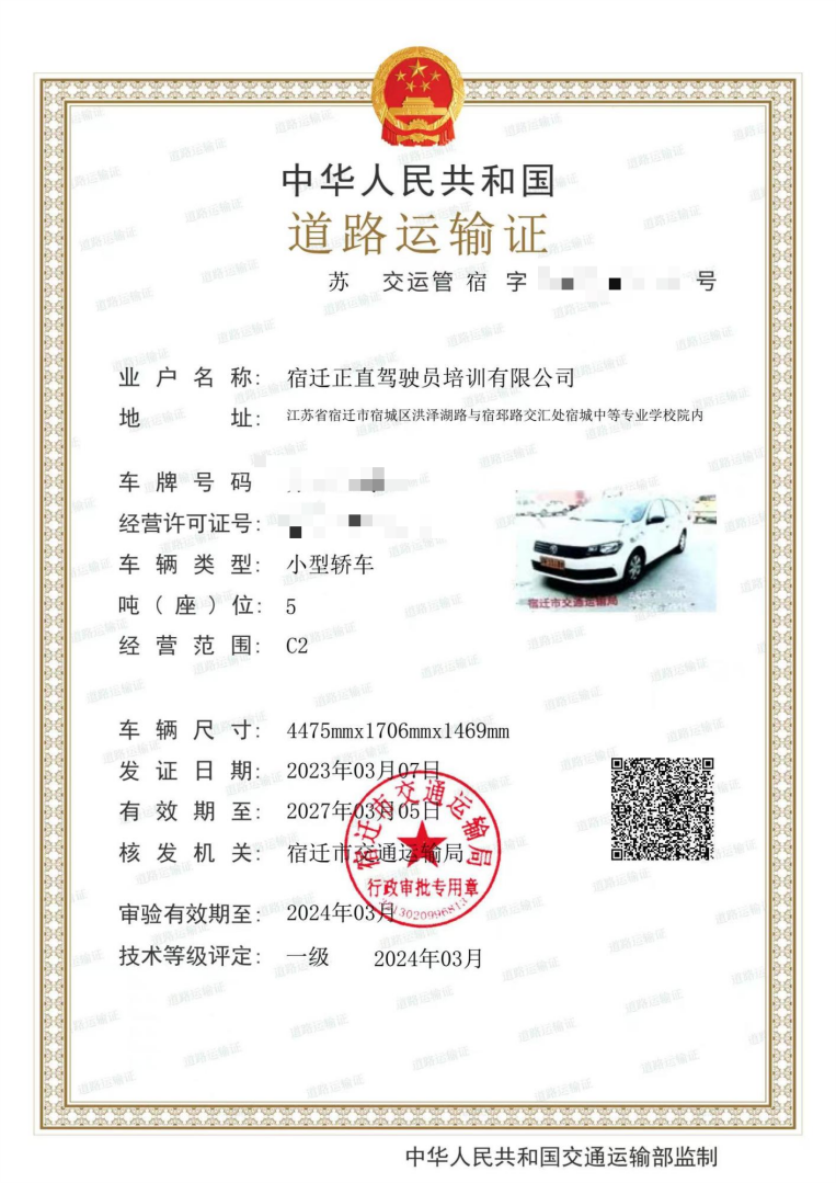 10月16日,在宿迁交通运输局工作人员的指导下,宿迁市正直驾驶培训有限公司工作人员张女士申领到教练车道路运输电子营运证。这也是全面启用教练车道路运输电子营运证后,宿迁市交通运输局发放的第一张教练车道路运输电子营运证。
