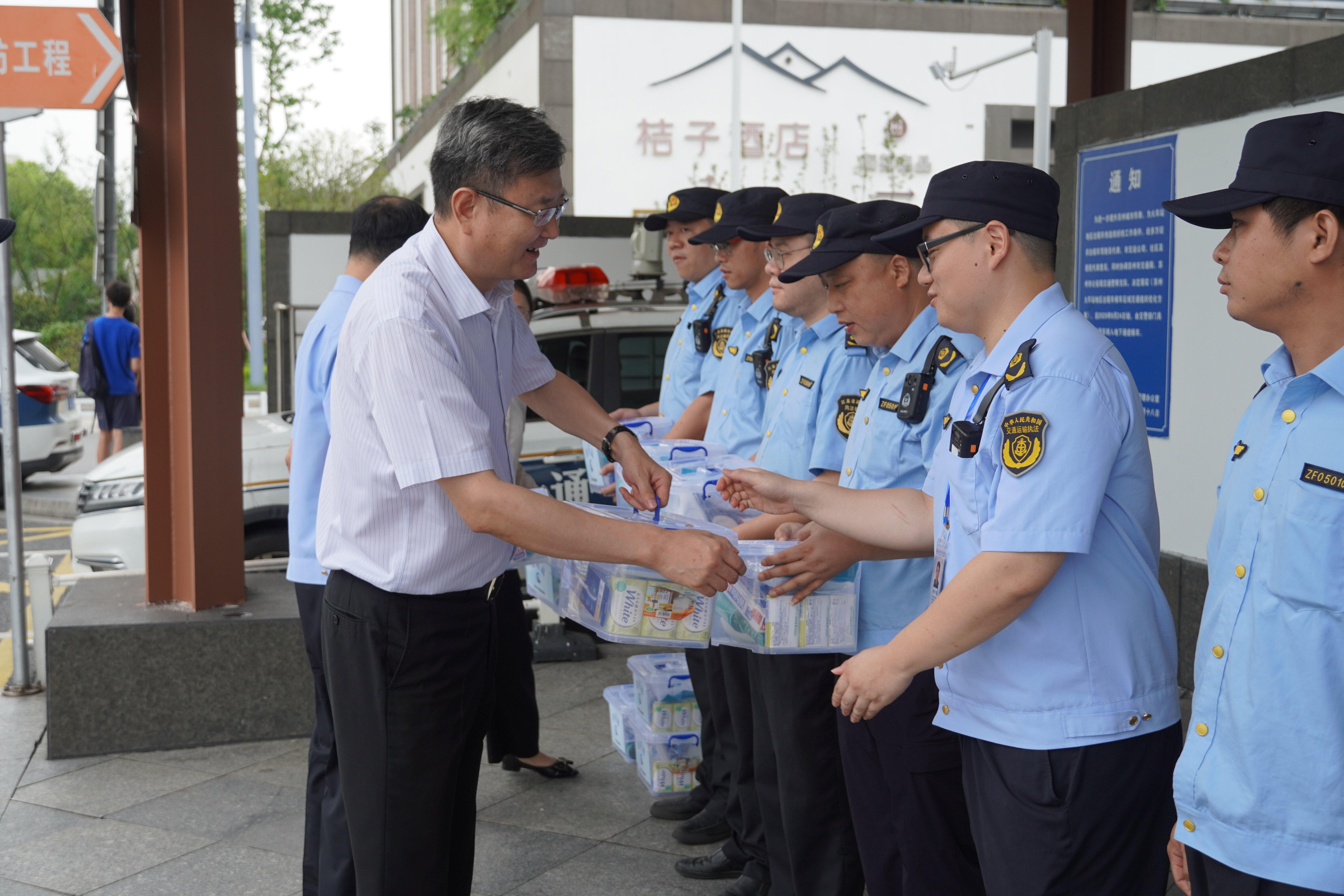 7月19日上午,苏州市交通运输局党委书记、局长焦亚飞带领局工联会一行来到市交通运输综合行政执法支队道路执法五大队,亲切慰问高温天气下奋战在基层一线的执法人员。