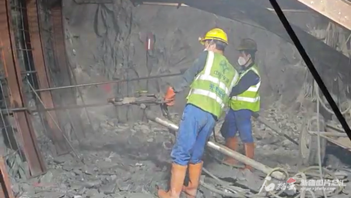 天山胜利隧道内,施工人员在加固洞壁。柳新鹏摄