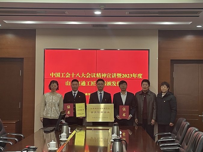慰问组成员现场宣讲了习近平总书记在同全总新一届领导班子成员集体谈话时的重要讲精神和中国工会十八大精神,为山东交通工匠、行业全员创新企业和劳模工匠创新工作室等先进典型颁发了奖牌和证书,调研了解“强国示范”劳动竞赛和职工创新工作,查看了职工服务阵地建设情况,向在严寒天气里奋战在工作岗位上的广大职工致以诚挚慰问,鼓励广大交通职工努力拼搏,创先争优,为加快建设交通强国山东示范区贡献智慧和力量。