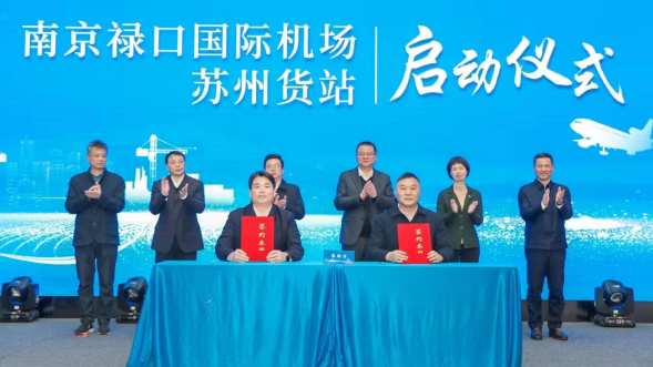2023年12月28日,首批3吨汽车核心零件在江苏(苏州)国际铁路物流中心预先完成安检、报关等手续,通过卡车航班运送至南京禄口国际机场,搭乘飞向美国的洲际货运航班,标志着南京禄口国际机场苏州货站正式启用,为江苏自由贸易试验区苏州片区的高新技术企业降本增效拓展了国际航空物流新通道。省交通运输厅党组成员何平,省商务厅二级巡视员强培,东部机场集团党委副书记、总经理朱文松,南京市政府副秘书长、南京临空经济示范区党工委书记蓝军,苏州市委常委、副市长唐晓东等出席揭牌仪式。