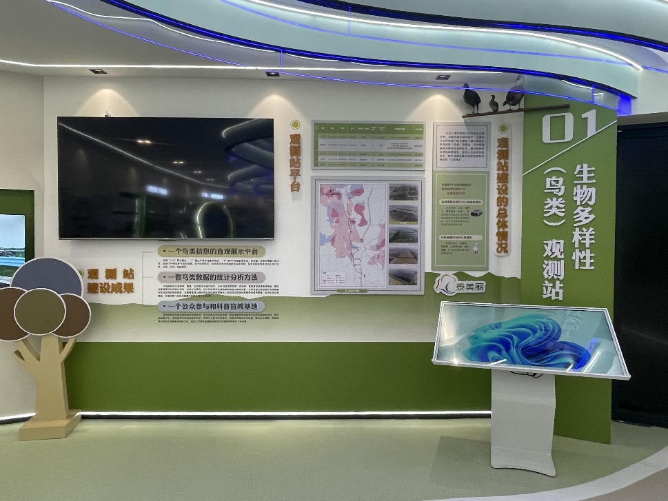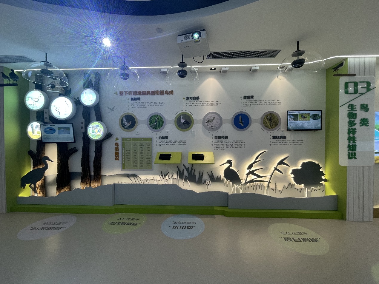 建兴高速生物多样性(鸟类)观测站集鸟类观测与识别、噪声环境监测、数据集成、直观展示于一体,在高速沿线共建设了观测站点5个、机房1处和观测站宣教展厅1处。采用1.5亿像素高清摄像机对重点区位进行观测,通过国内自主知识产权鸟类AI识别模型,已能够实现对30种湿地鸟类进行识别,准确率>90%。观测站宣教展厅以绿色高速内容展示为基础,打造综合性生态环境保护和生物多样性保护宣传教育基地。(省交建局)