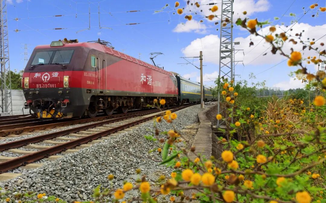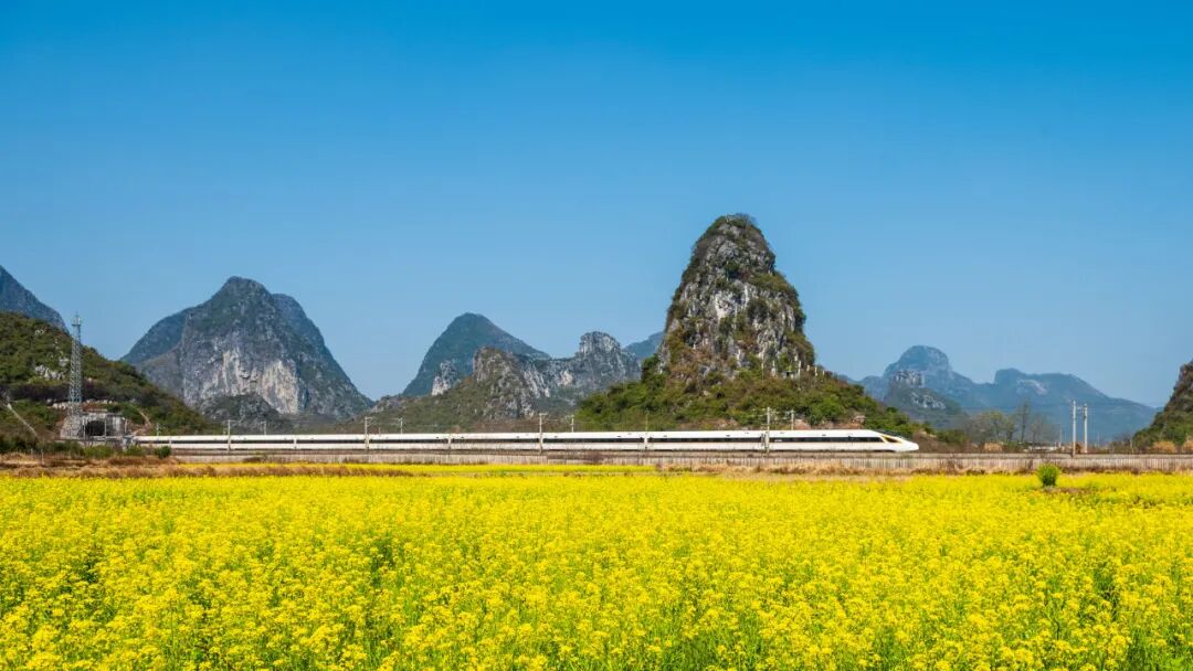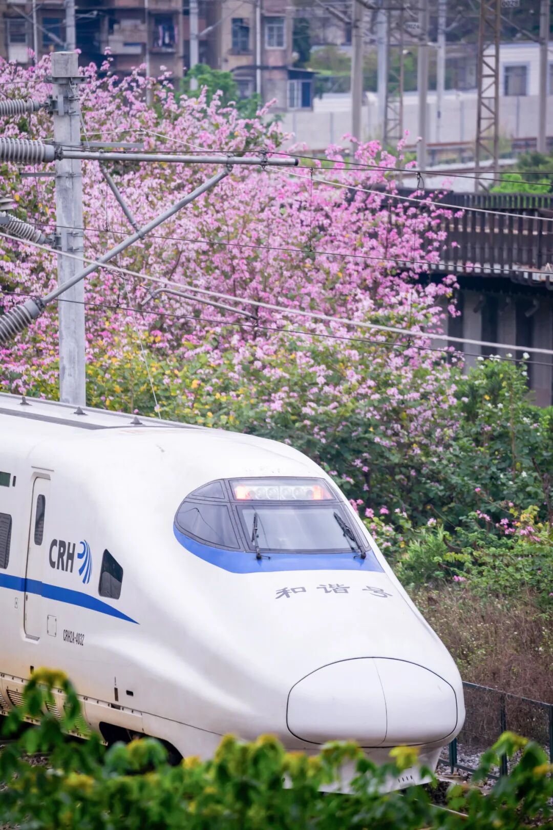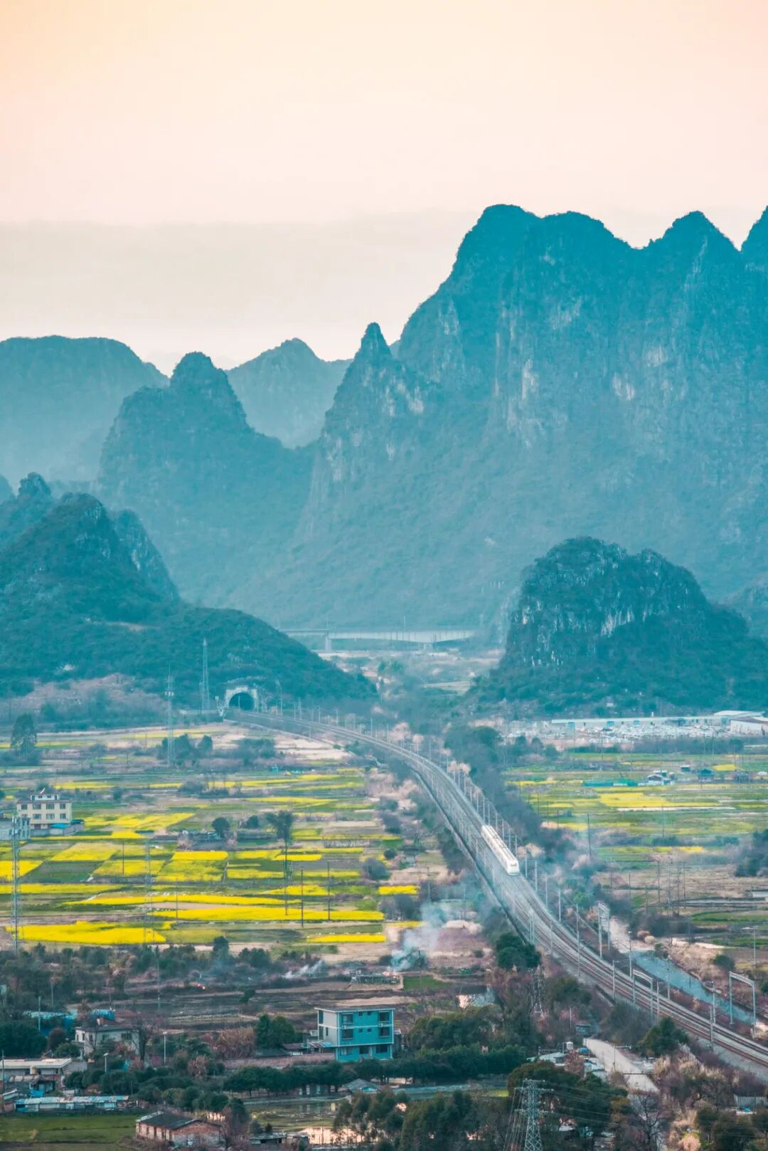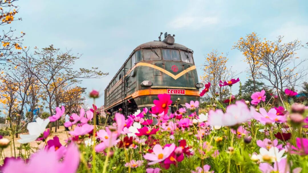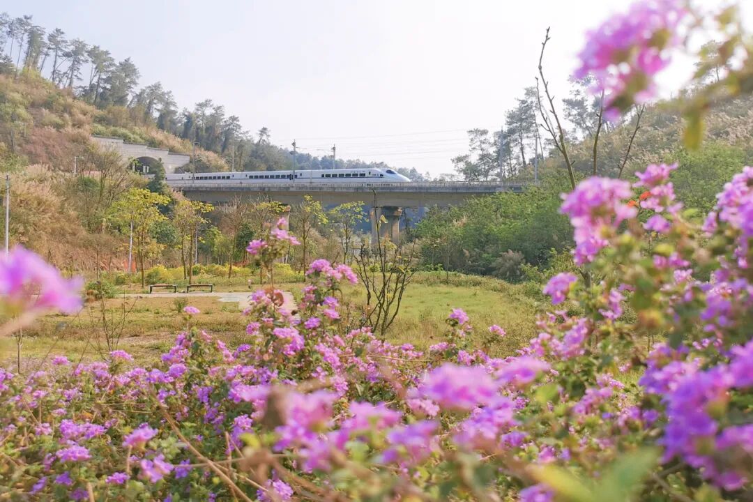 一望无际的花海嬉闹声在山河间回荡这趟列车