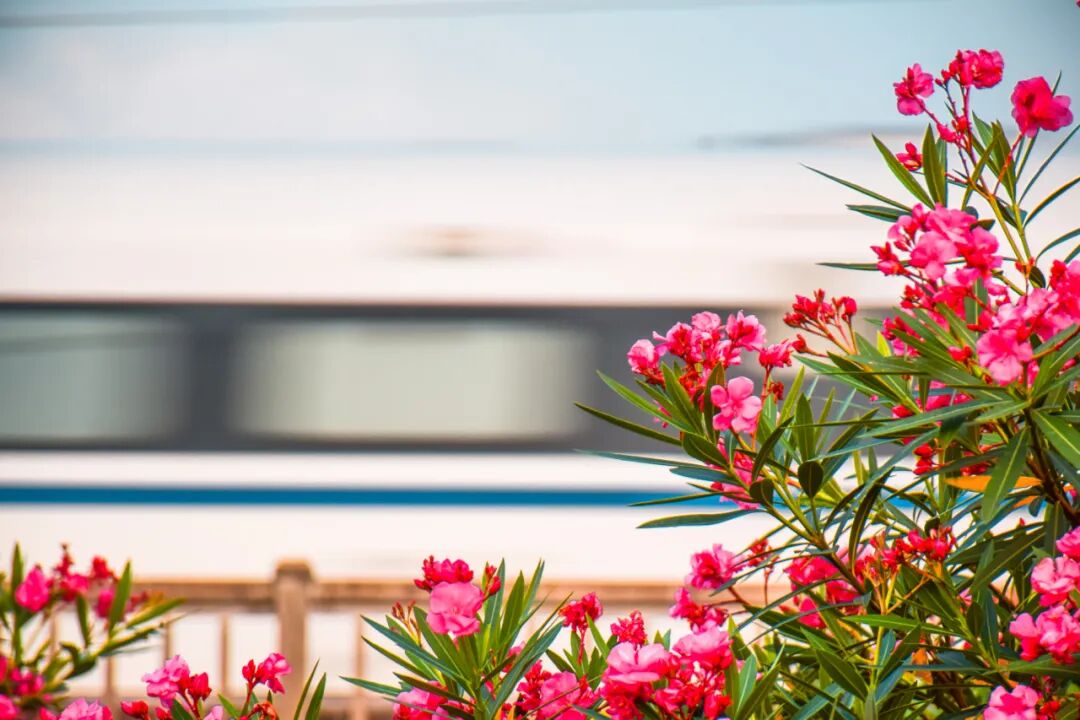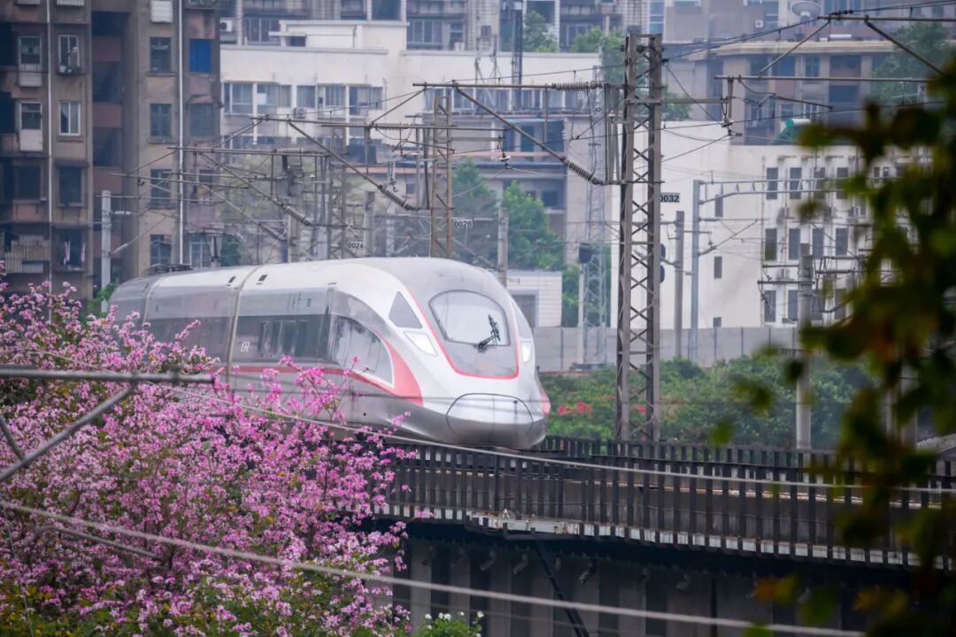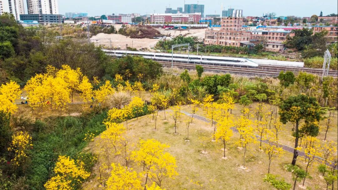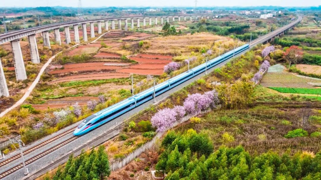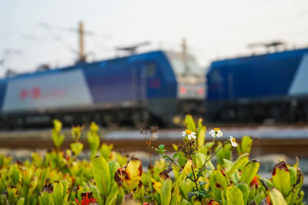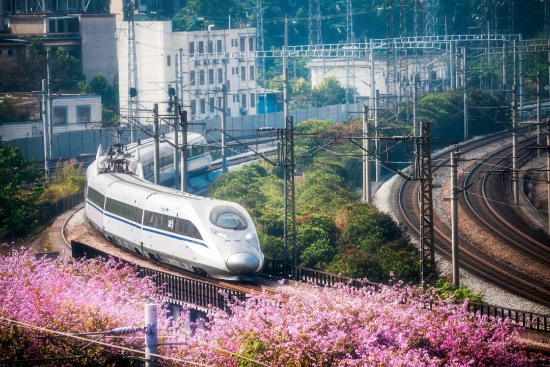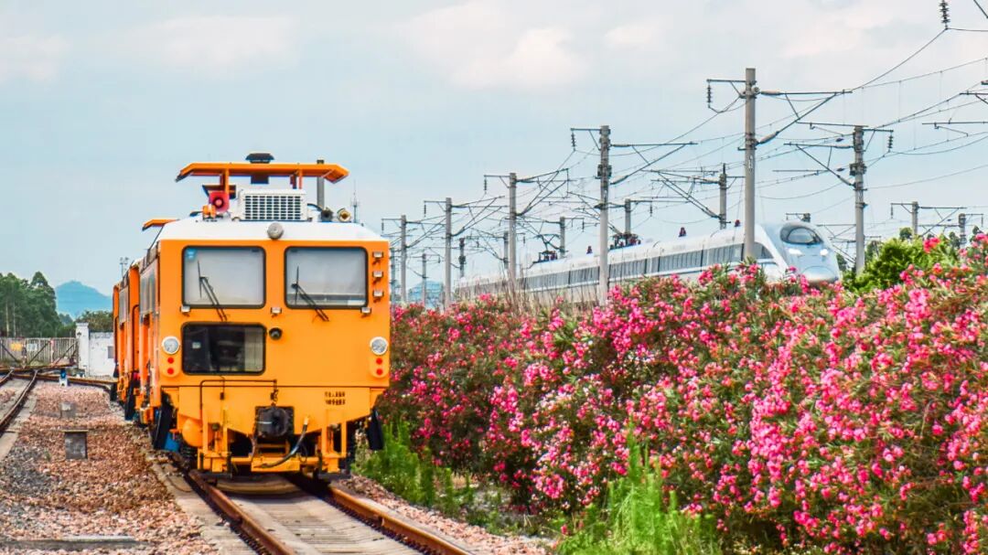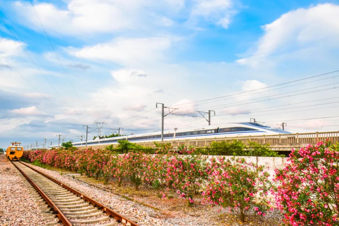 一望无际的花海嬉闹声在山河间回荡这趟列车
