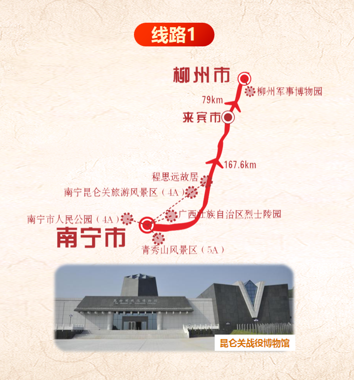 昆仑关位于南宁市兴宁区和宾阳县交界的昆仑山东侧,距离南宁市区56公里,南梧二级公路从昆仑山脚下绕过,交通十分便捷。昆仑关的每一寸土地上都残留着战火的痕迹,令人不胜感慨。昆仑关大战的教育意义影响深远,也是广西旅游业绝无仅有的一个抗战特色资源。