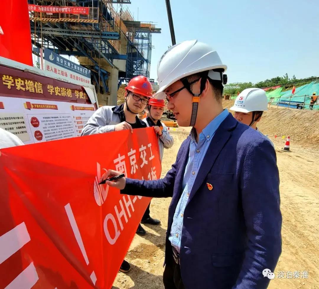 我是一名青年,更是一名党员,生逢盛世,必当自强。作为测量工程师,我将尽责尽职,把好现场测量关,服务好工程建设。——航道3标段 李佳伟