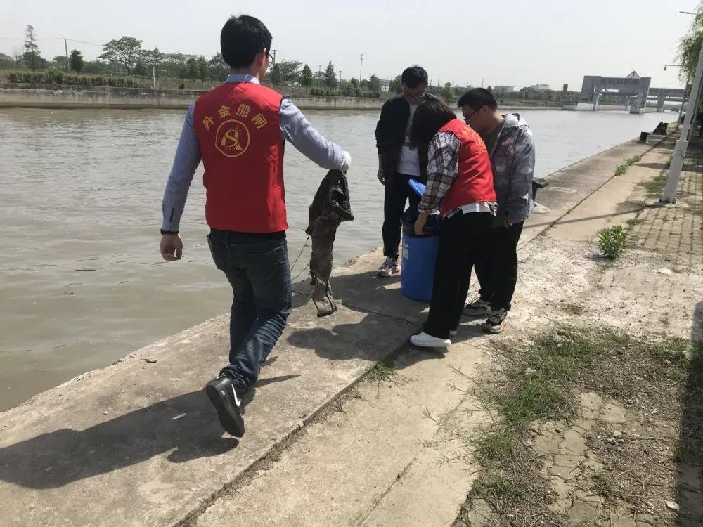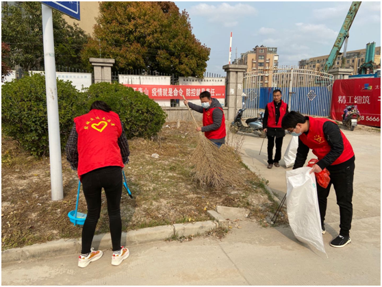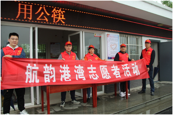 盐城市港航中心机关青年志愿者放弃休息时间,参与结对社区街道的保洁工作。